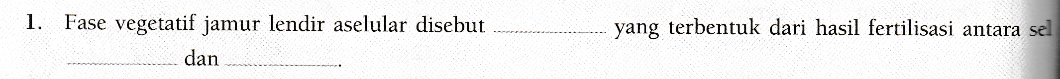1. Fase vegetatif jamur lendir aselular disebut dan yang terbentuk dari hasil fertilisasi antara sel