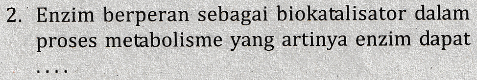 2. Enzim berperan sebagai biokatalisator dalam proses metabolisme yang artinya enzim dapat ..