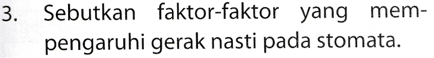 3. Sebutkan faktor-faktor yang mem- pengaruhi gerak nasti pada stomata.