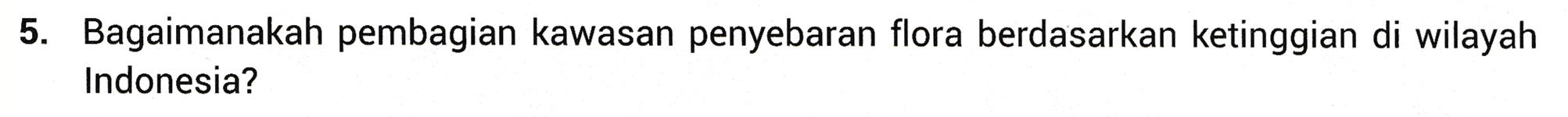 5. Bagaimanakah pembagian kawasan penyebaran flora berdasarkan ketinggian di wilayah Indonesia?