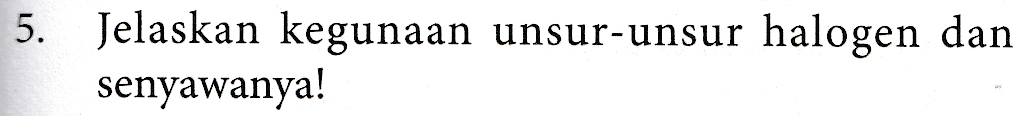 5. Jelaskan kegunaan unsur-unsur halogen dan senyawanya!